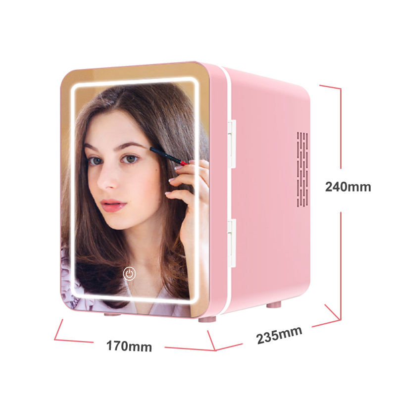 Petit Mini Réfrigérateur Rose Personnalisé 4L Réfrigérateur Cosmétique Portable de Maquillage Réfrigérateur de Beauté avec Miroir LED