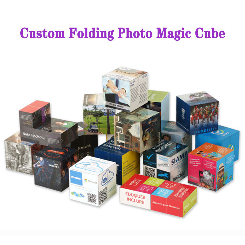 Cube magique pliable carré personnalisé de 5/6/7/8/10cm jouet éducatif de bricolage logo personnalisé Photo publicité 3d Cube de puzzle pliant