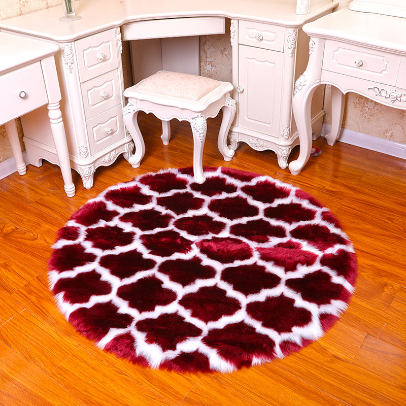 Tapis rond en laine de soie douce et moelleuse, à poils de 5-6 mm, motif géométrique, pour décoration moderne de la maison - Salon, chambre à coucher