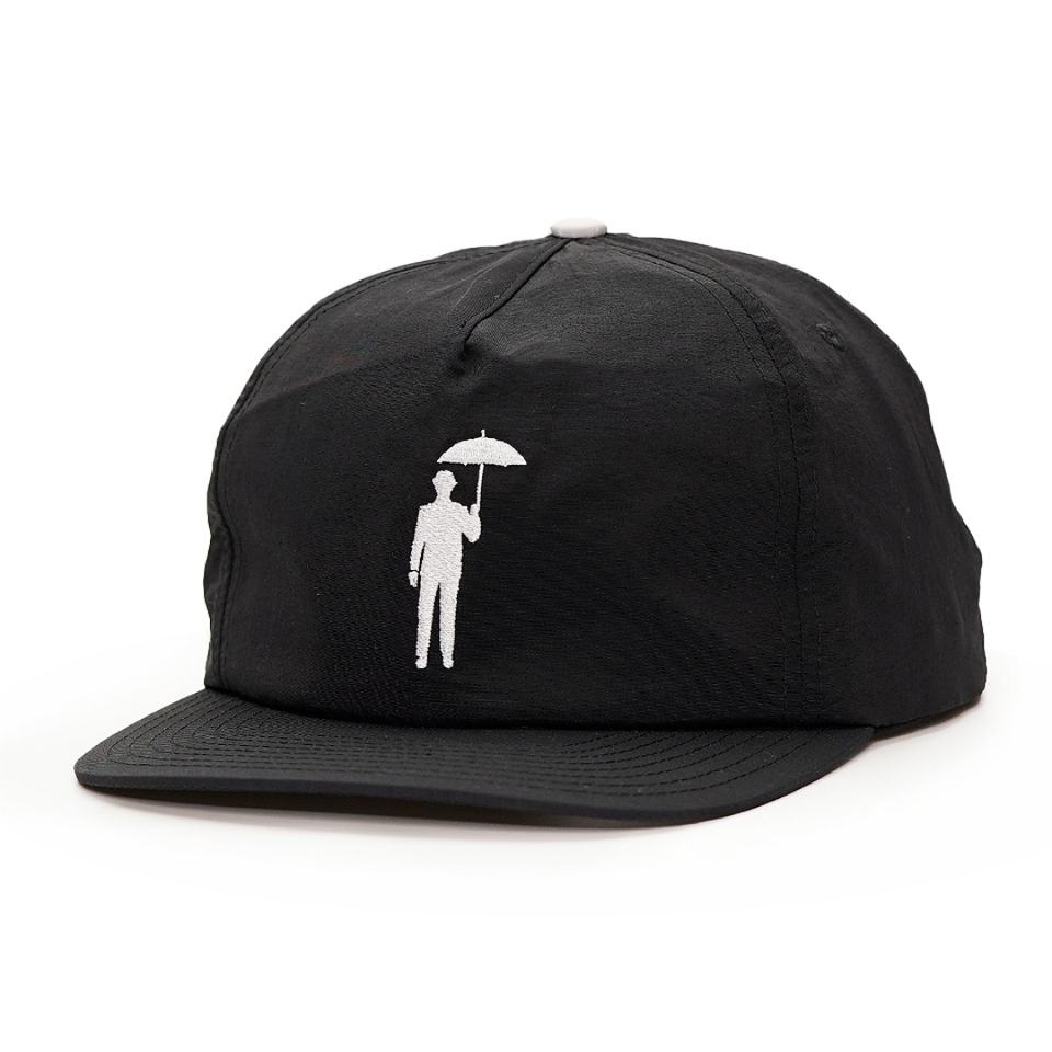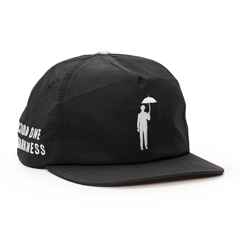 Casquettes noires à 5 panneaux personnalisées, logo brodé, non structurées, en nylon, avec fermeture à pression