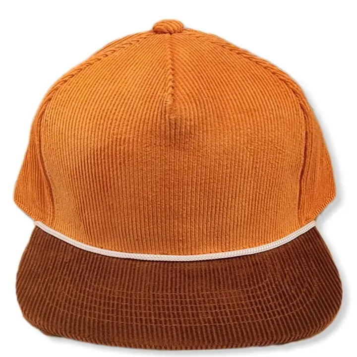 Casquette snapback personnalisée à 5 panneaux en velours côtelé Casquette de baseball bicolore non structurée à cordon de serrage réglable avec broderie à bord plat