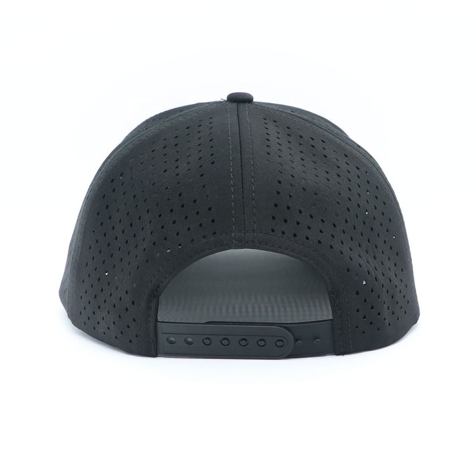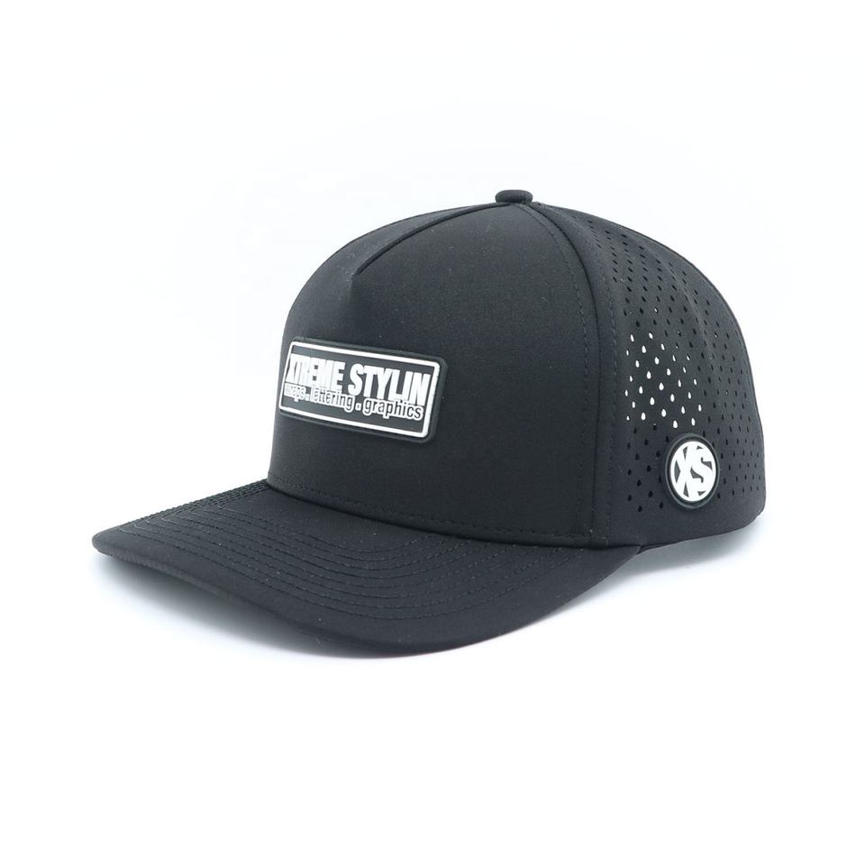 Casquette de baseball personnalisée à 5 panneaux en PVC caoutchouté avec logo, imperméable, perforée au laser, de haute qualité, à visière incurvée