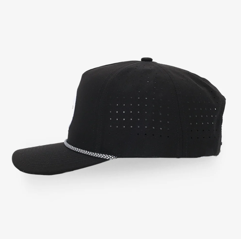 Casquette de golf noire classique à 5 panneaux personnalisée, respirante, à bord légèrement incurvé, avec patch en caoutchouc PVC, conception de logo 3D