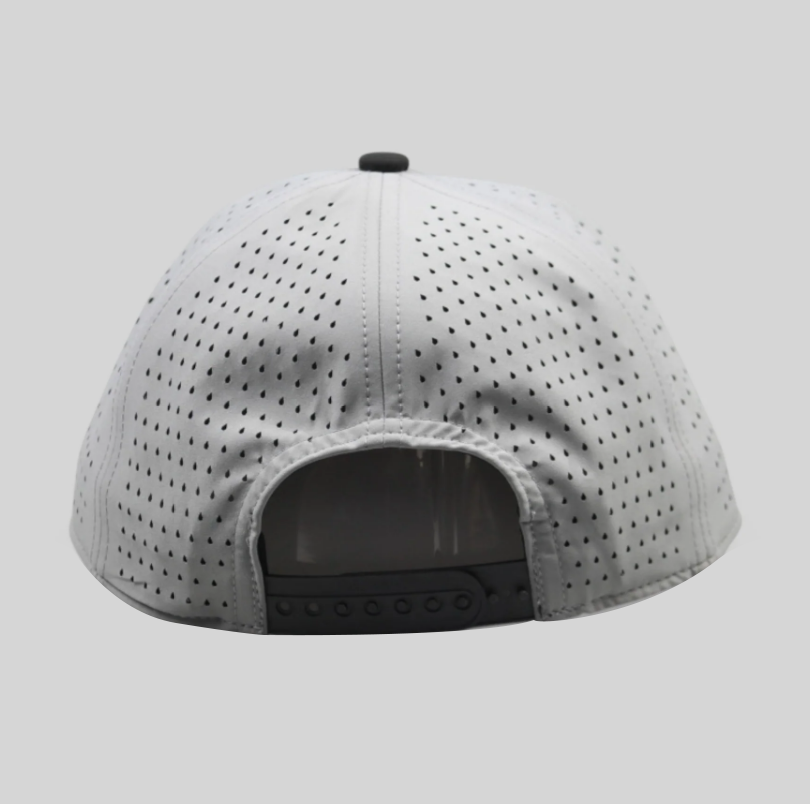 Casquette de golf personnalisée à 5 panneaux en polyester imperméable pour hommes casquette de baseball sportive en corde de papa perforée découpée au laser avec logo brodé à la main