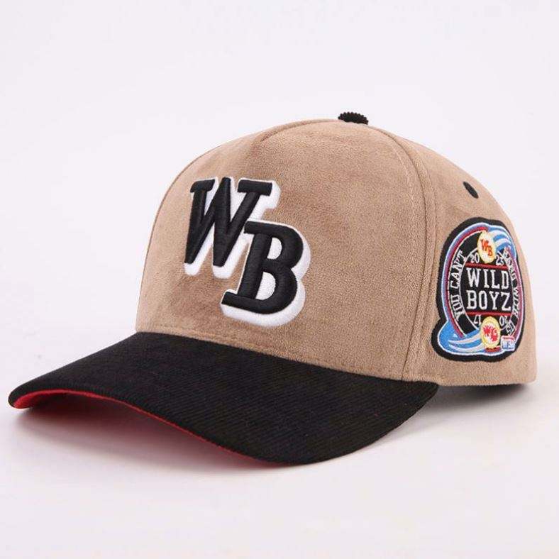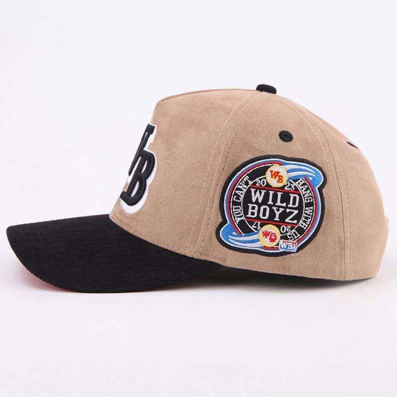 Casquettes de baseball snapback unisexes personnalisées à 5 panneaux, bicolores, en suède 100% polyester, style sportif urbain, pour l'extérieur