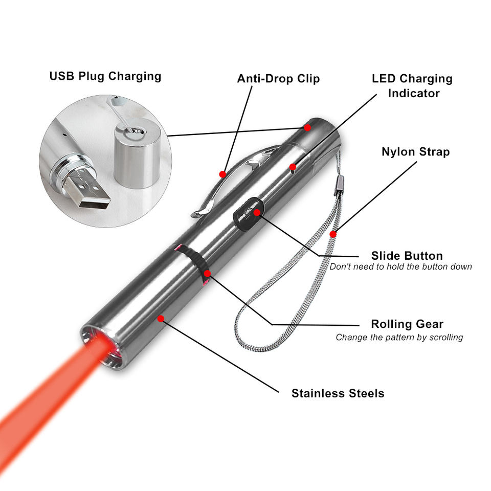 Jouet lampe de poche à projection interactive personnalisée 5 modèles rechargeable par USB pour animaux de compagnie Pointeur laser pour chat avec projection de souris et poisson d'intérieur