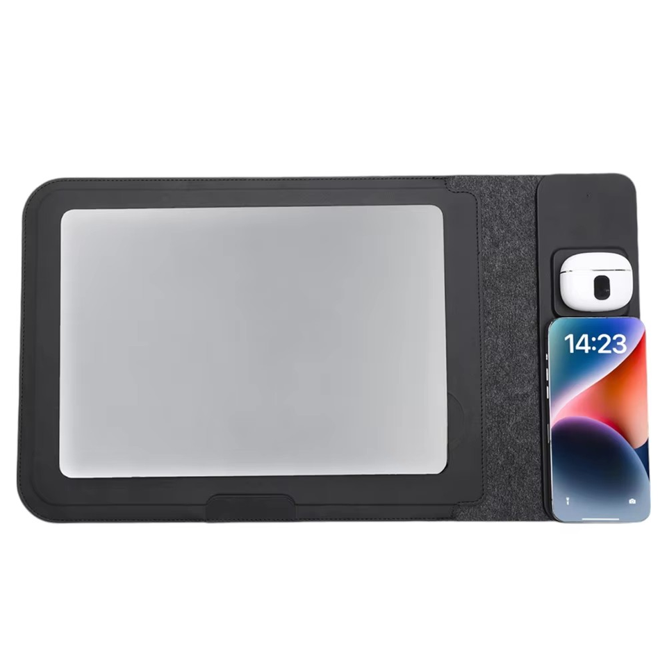 Housse pour ordinateur portable en cuir PU personnalisée 5 en 1 avec tapis de charge sans fil pour Macbook Air Pro 13 14 15 16 pouces
