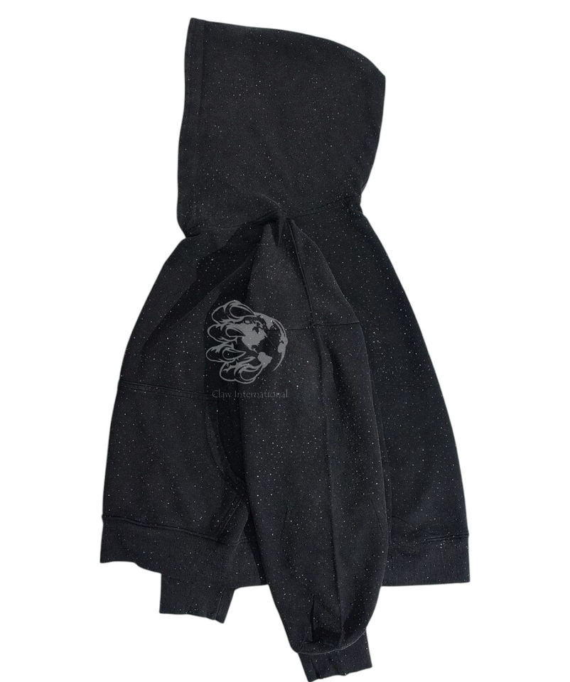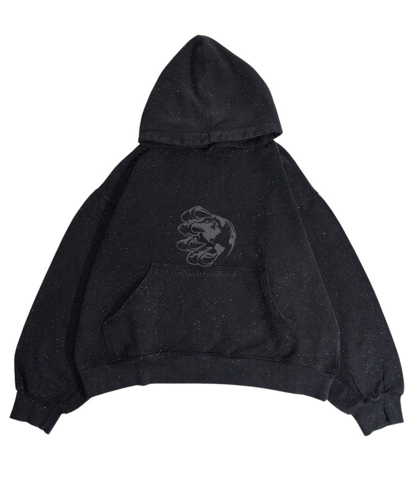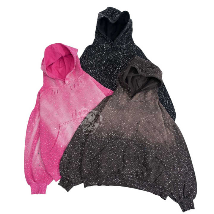 Sweat à capuche d'hiver personnalisé en coton 100% tissé épais 430 g/m² avec strass sur toute la surface et délavage à l'acide