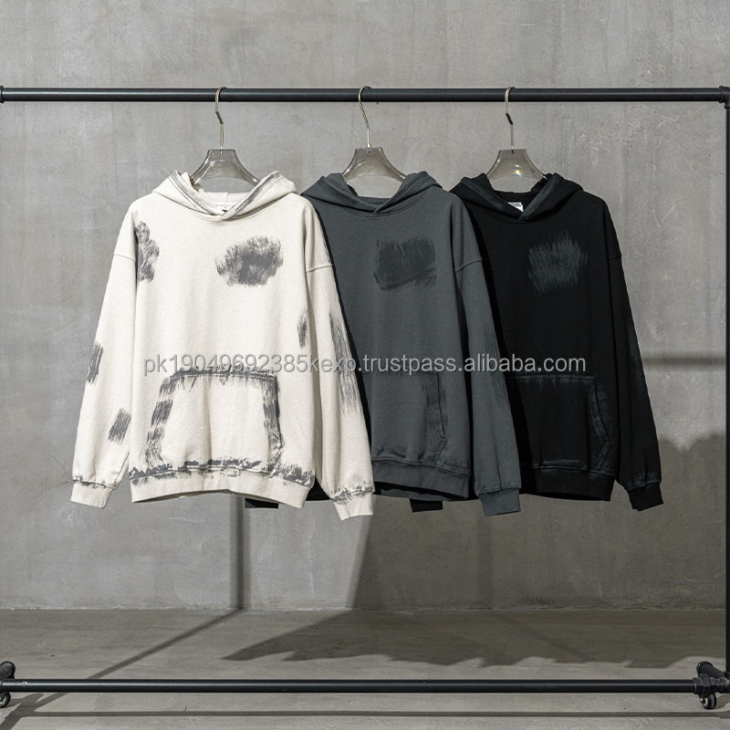 Custom 500 gsm oversized boxy fit french terry hoodie sun faded hoodie distressed embroidery acid wash mens hoodies