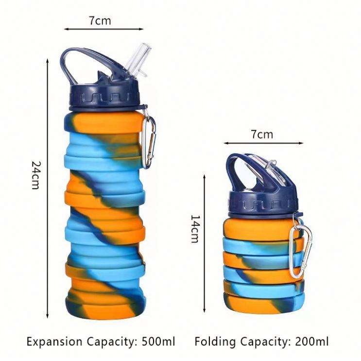 Bouteille d'eau pliable personnalisée 500 ml sans BPA, étanche, avec paille, pour voyage, sport, promotionnelle, pour enfants, conservation au froid, personnalisable