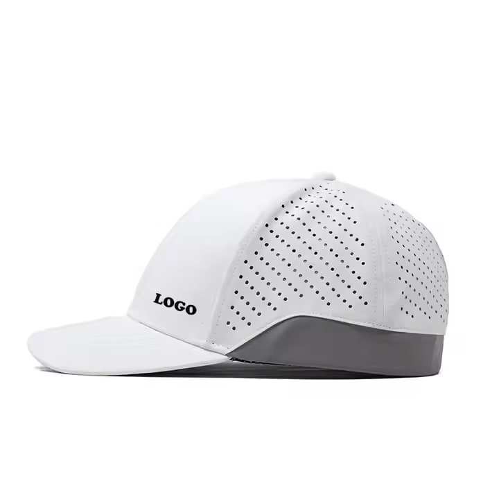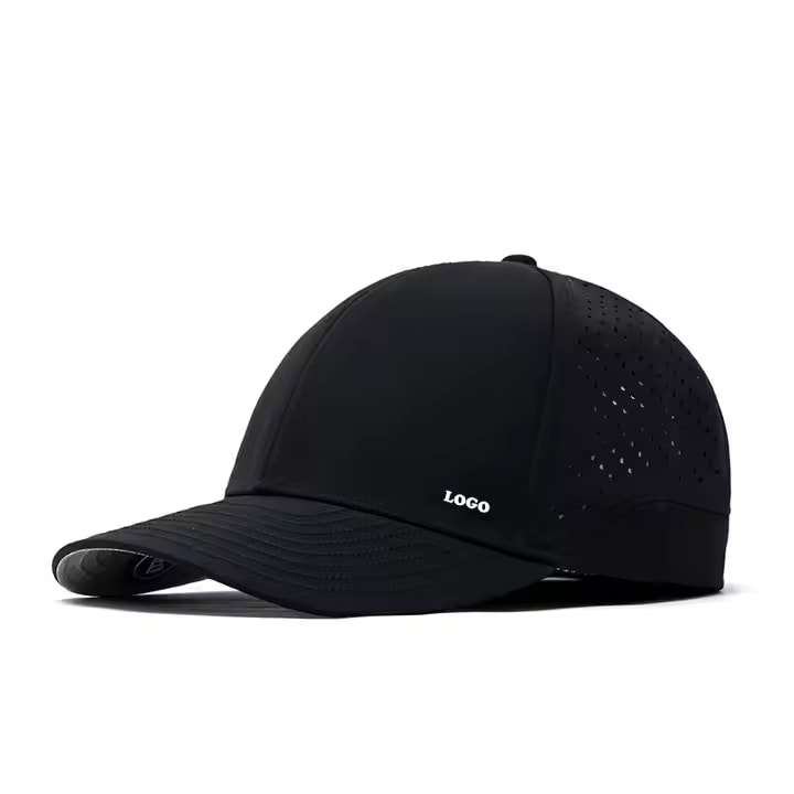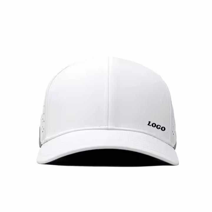 Chapeau Flex Fit perforé à 6 panneaux découpé au laser personnalisé, chapeau de papa ajusté imperméable Hydro Performance à ajustement sec, casquette de baseball à dos fermé