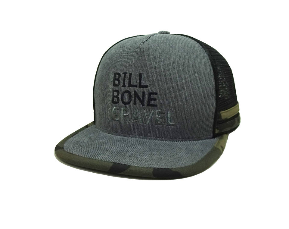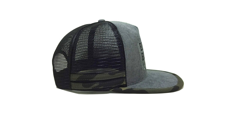 Casquette Trucker en Maille à 6 Panneaux Personnalisée avec Visière Imprimée Grise, Broderie 2D 5 Panneaux, Bordure Camouflage, Casquette Snapback en Maille