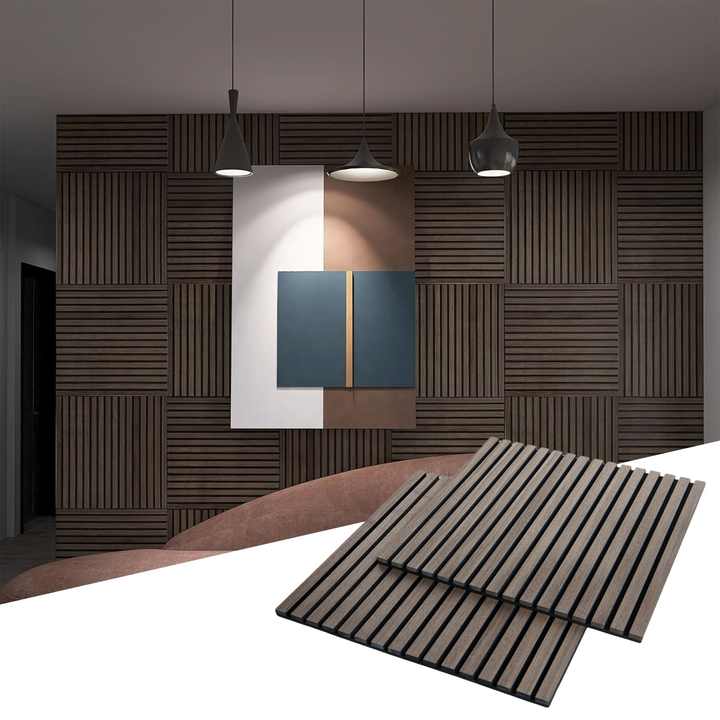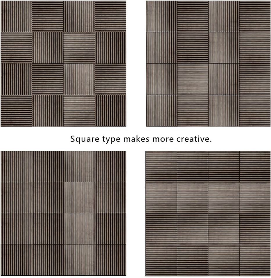 Fond décoratif personnalisé de 60cm, carré en bois d'ardoise 3D, fond en PET, panneaux acoustiques à lattes en bois naturel, Akupanel
