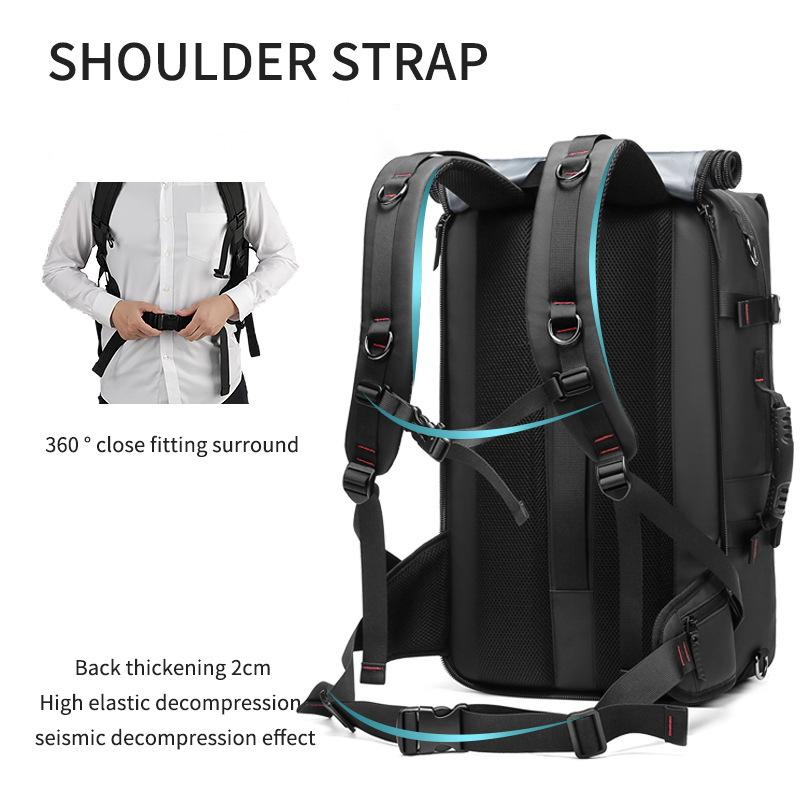 Sac à dos tactique de randonnée en plein air personnalisé de 60 l, imperméable, en PU, pour homme, avec fonctions antivol, compartiment pour ordinateur portable, compartiment pour chaussures, port USB