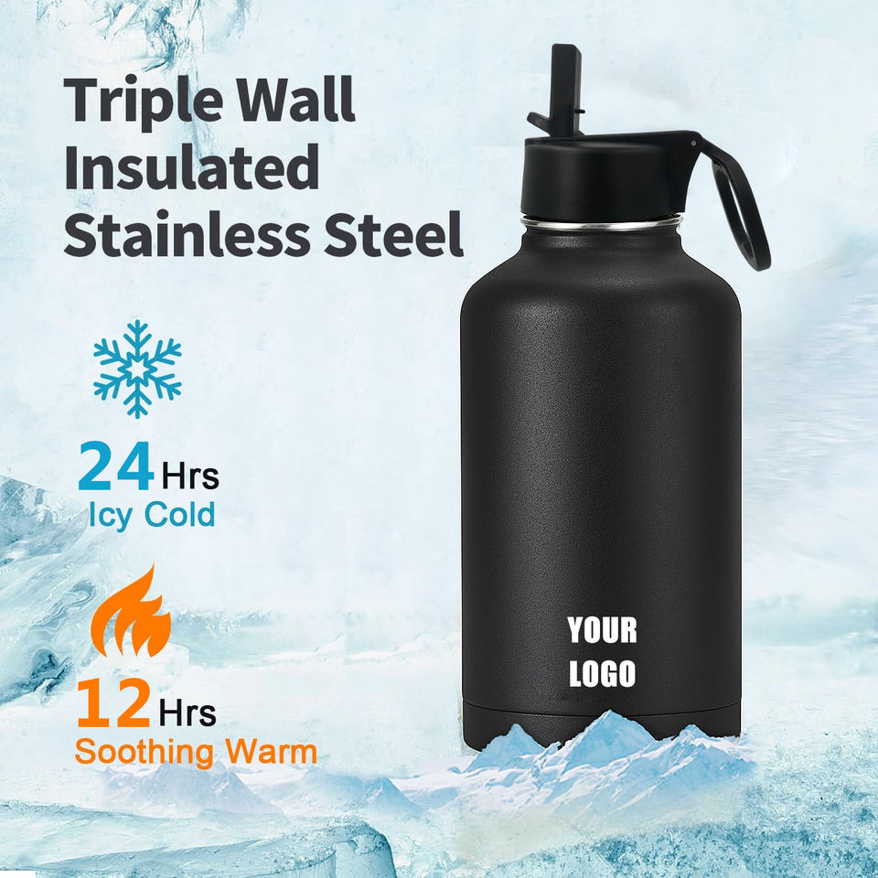Bouteille d'eau isotherme portable en acier inoxydable de 2 L (64 oz) personnalisée, grande capacité, écologique, pour le sport, type Growler