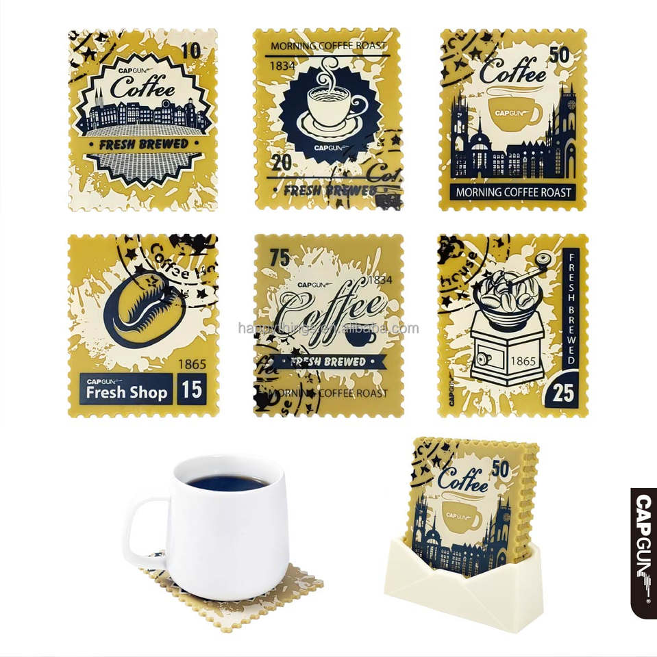 Item Name:6PCS PVC Custom Cup Stamp Coaster Place Mat with Envelope Holder Stand