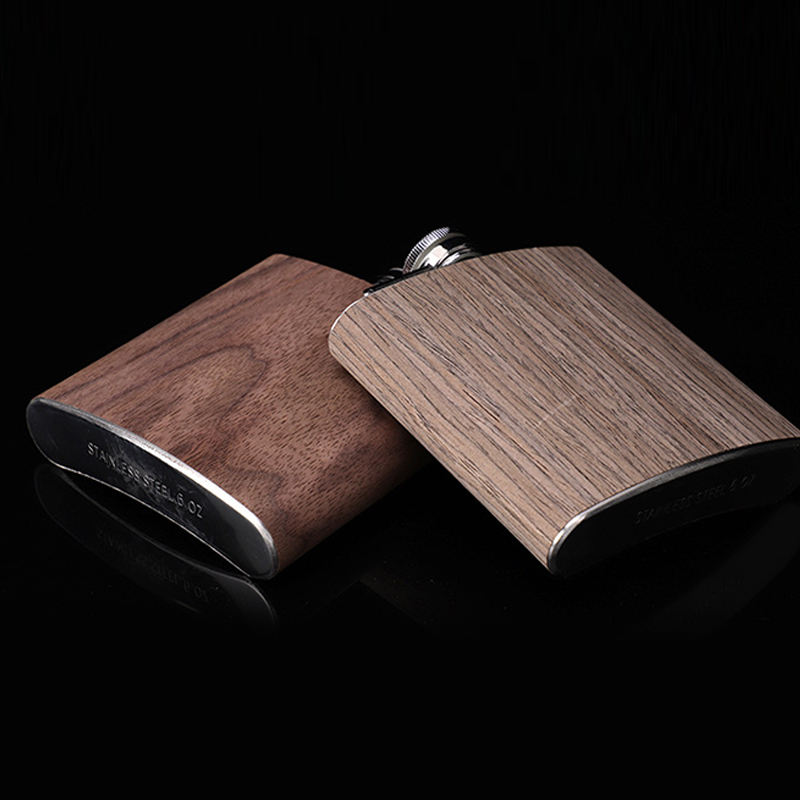 Flacon de hanche en acier inoxydable de poche portable personnalisé de 6oz motif de grain de bois pot de vin whisky buveur bouteille d'alcool voyage