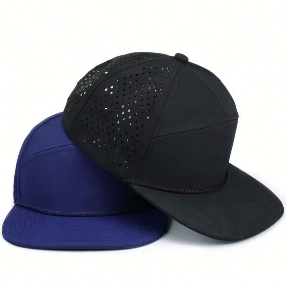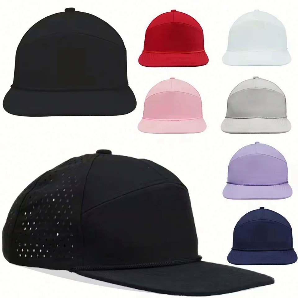 Casquette de baseball unisexe personnalisée à 7 panneaux, perforée au laser, style streetwear, avec corde et visière plate