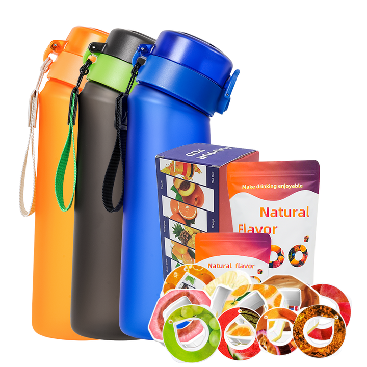 Bouteille d'Eau Personnalisée de 750 ml en Tritan Sans BPA avec Capsules d'Arôme et Emballage – Différentes Saveurs par Aspiration