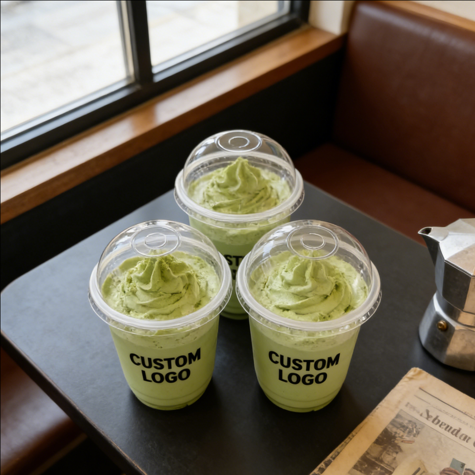 Gobelets à dessert en plastique transparent à paroi simple personnalisés de 8 oz et 9 oz avec couvercles, diamètre 90 mm, personnalisation du logo par impression UV
