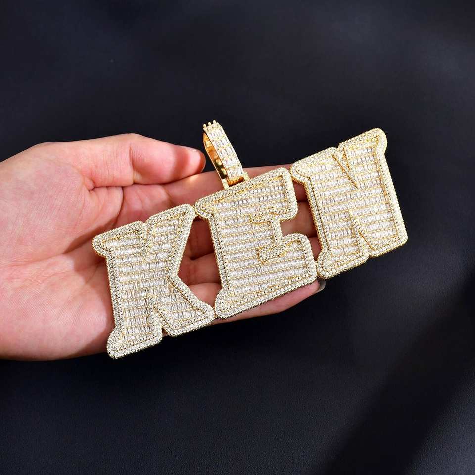Pendentif nom en diamant Moissanite glacé avec lettres majuscules en argent 925 personnalisé avec pendentifs et breloques de bijouterie fine Bling