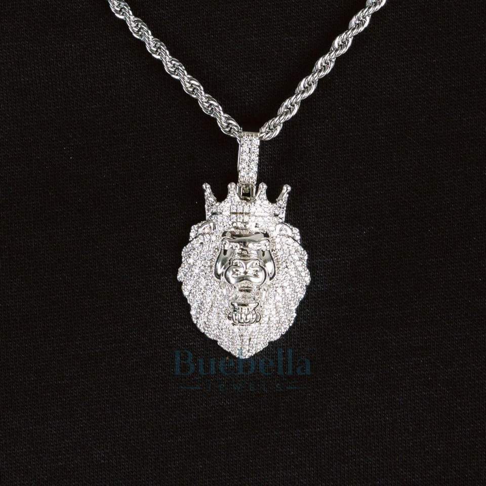 Personnalisé Argent 925 Plaqué Or Tête De Lion Roi Couronne Forme Entièrement Glacé VVS Moissanite Diamant Cubain Pendentif Bijoux Pendentifs Charmes