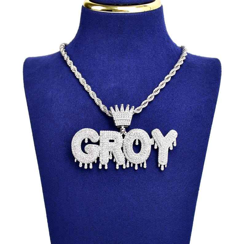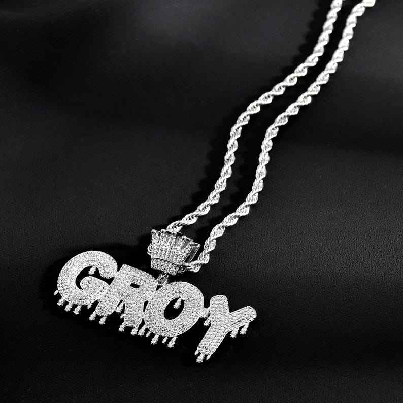 Pendentif personnalisé en argent 925 avec nom, chaîne personnalisée, cadeau personnalisé, lettres en moissanite, style hip-hop glacé, coupe brillante pour homme