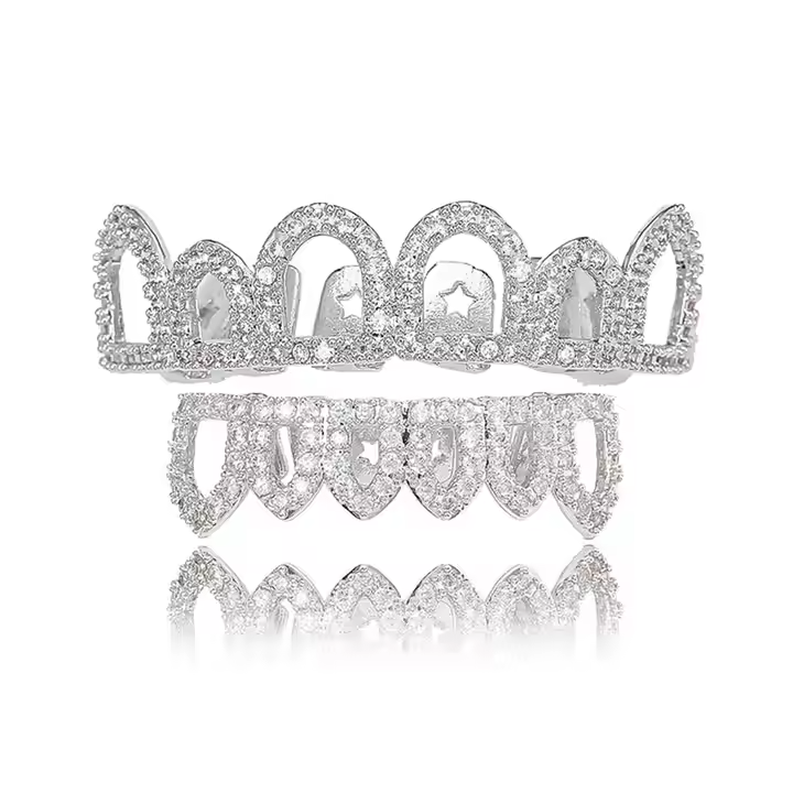 Custom 925 Silver Plated Round Brilliant Cut Moissanite Iced Out Grillz Set Drip Design with Maximum Bling Trendy