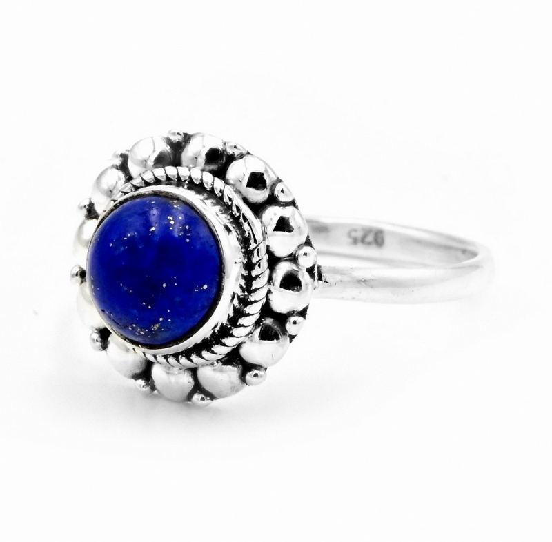 Bague en pierre ronde en argent sterling 925 personnalisée de 6 mm pour femmes dernière conception avec lunette en lapis-lazuli sertissant des bagues de bijoux incrustées
