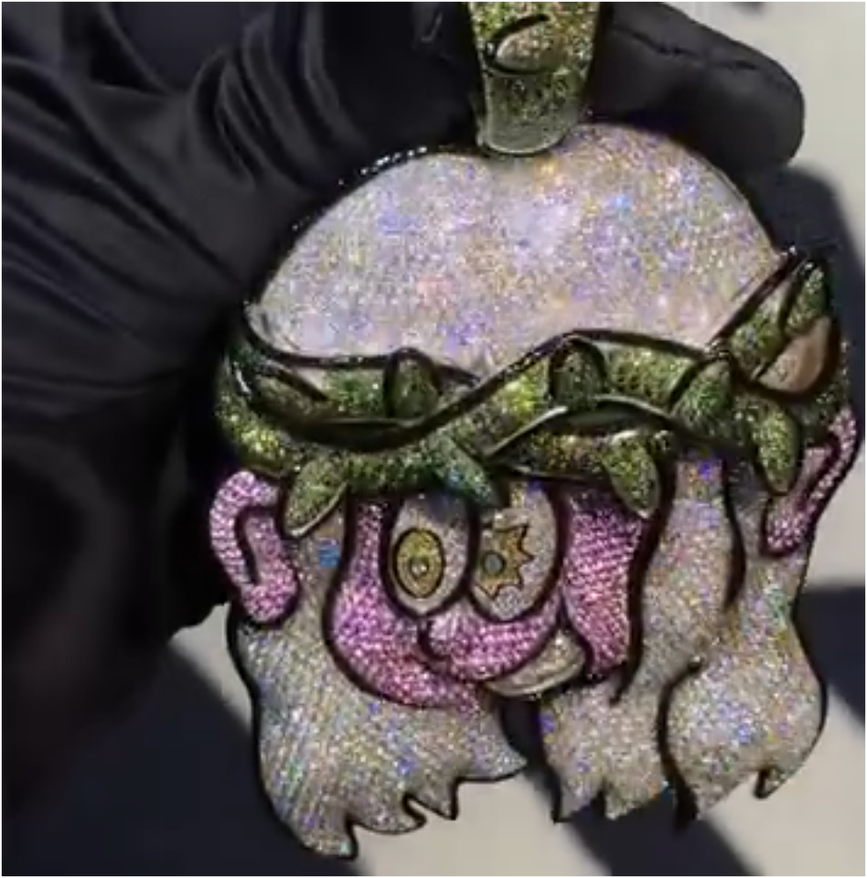 Collier personnalisé en argent sterling 925 avec pendentif visage de dessin animé, diamants Moissanite glacés, couronne verte, style Hip Hop unique, vert