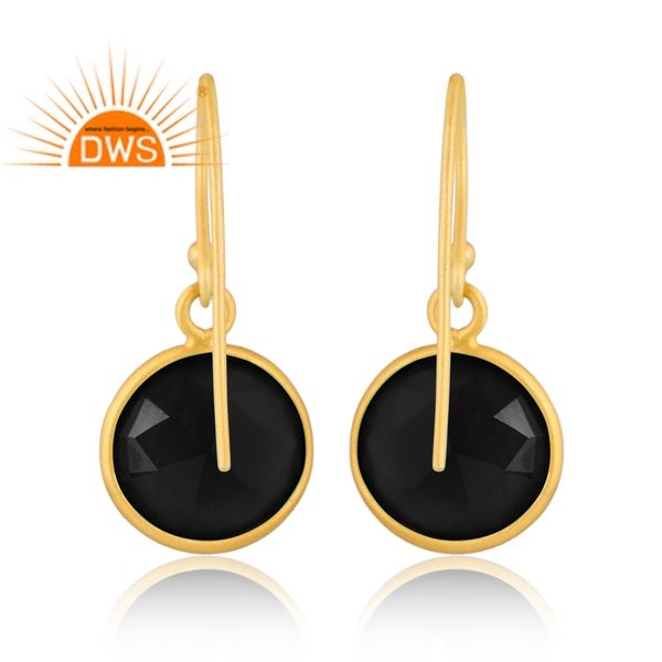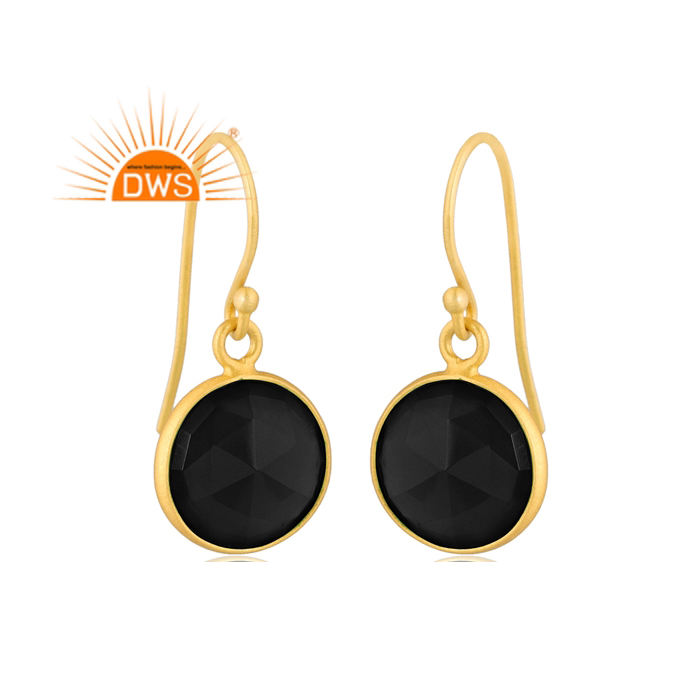 Boucles d'oreilles pendantes personnalisées en argent sterling 925 plaqué or avec pierre précieuse onyx noir naturel pour femme, cadeau de fête