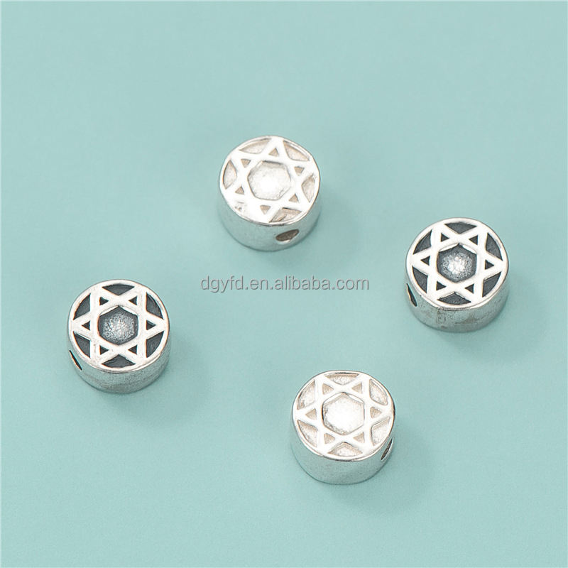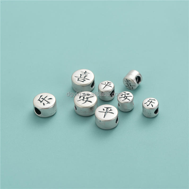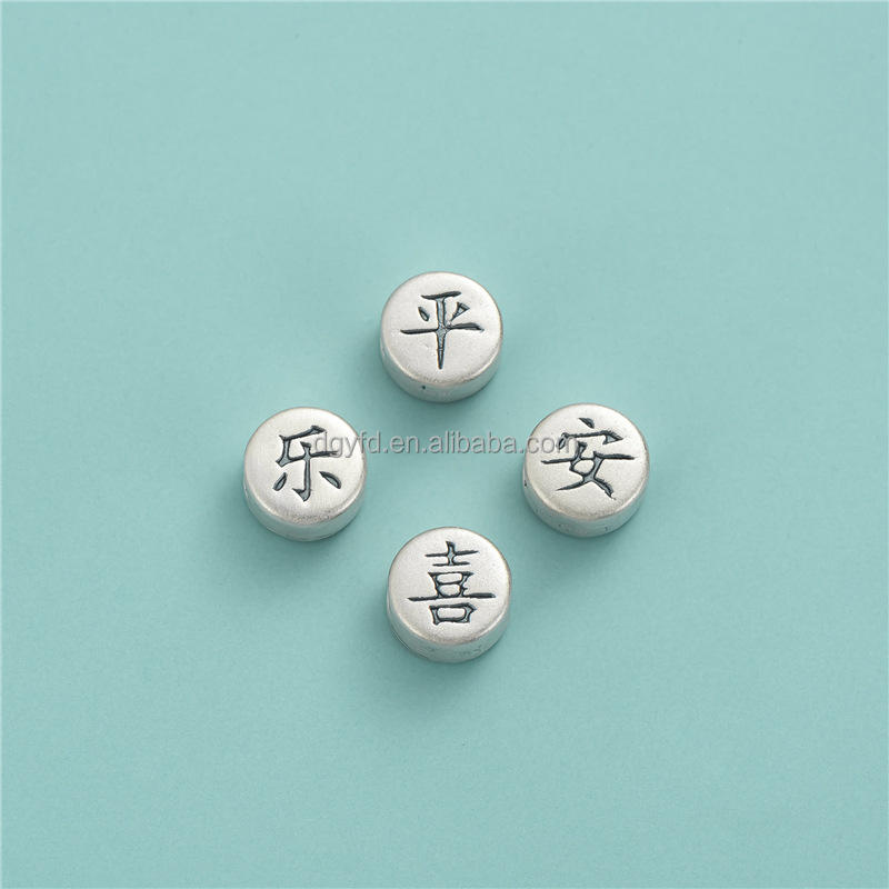 Perles de charme personnalisées en argent sterling 925 avec logo initial gravé, perles rondes plates d'espacement pour la fabrication de bijoux de bracelet, bricolage