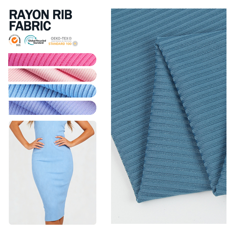 Tissu jersey côtelé français personnalisé 94% viscose 6% élasthanne pour poignets, taille, col, veste, pantalon, sous-vêtements, vêtements de sport