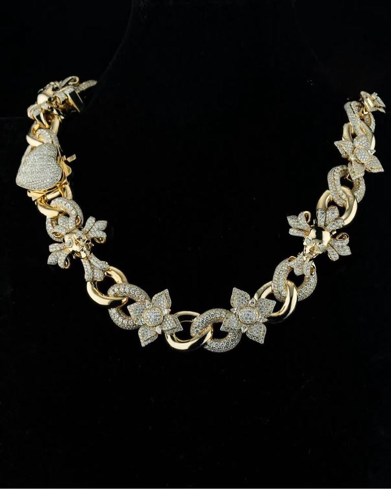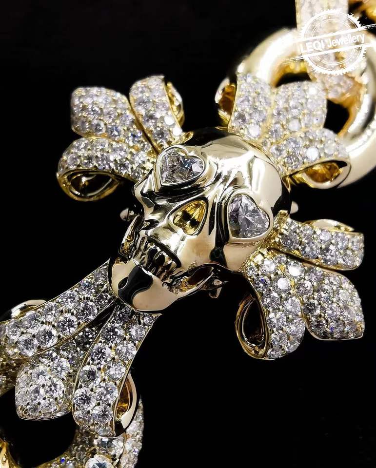 Chaîne à breloques personnalisée en or 9K-18K | Liens en diamant de culture en forme de cœur/crâne/fleur (Bijoux de luxe Romance/Rebel/Nature)
