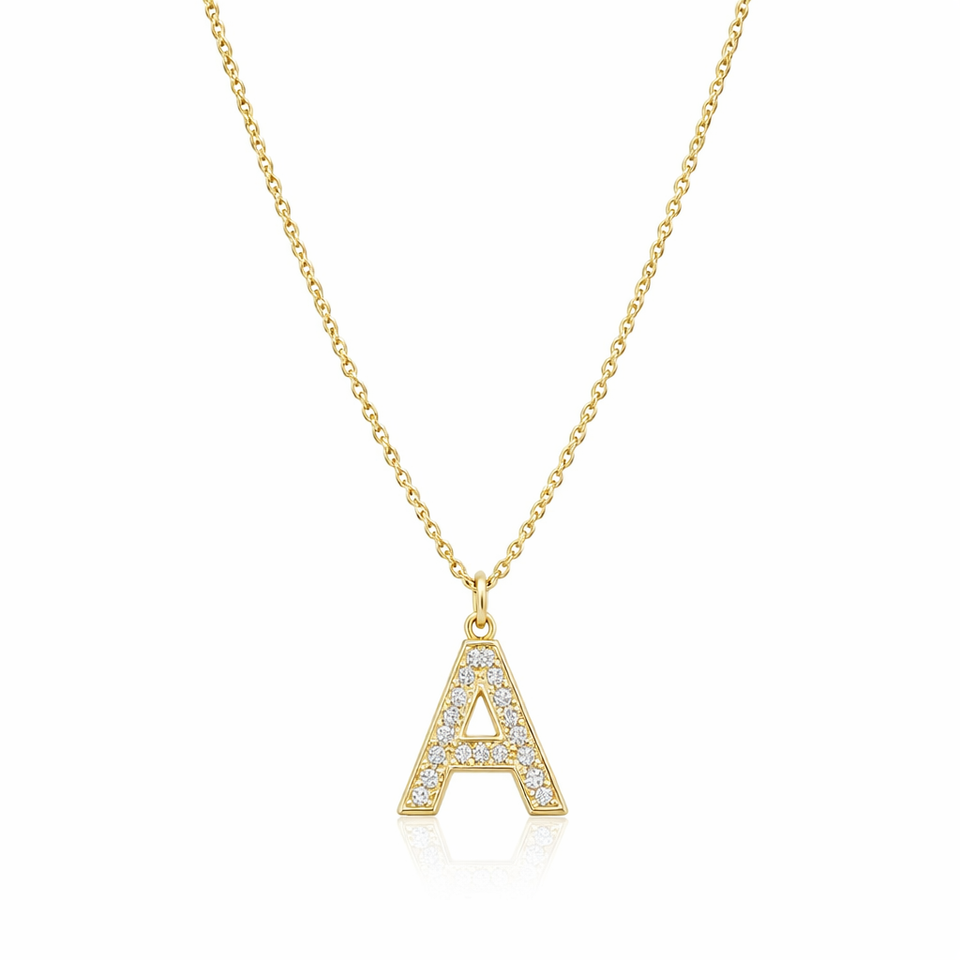 Nom du produit:Collier avec pendentif lettre de l'alphabet en or 18 carats, micro pavé