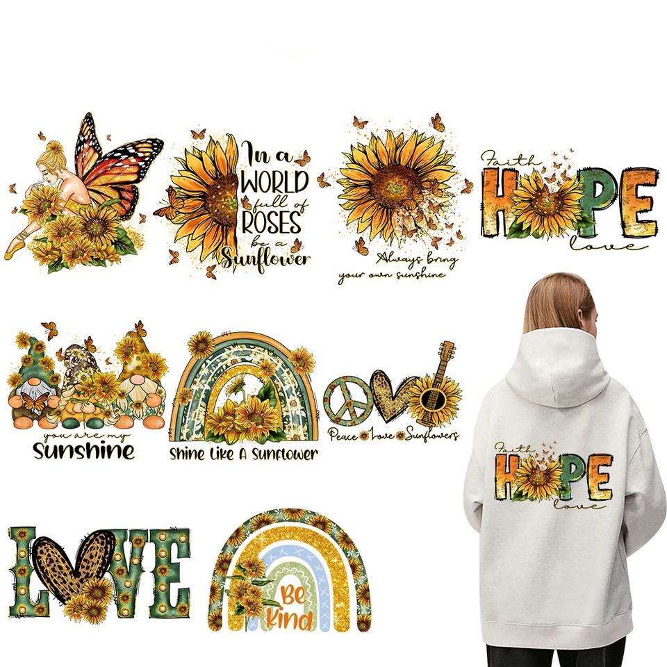 Transferts thermiques personnalisés A4, thème chrétien, tournesol, impressions de transfert thermique personnalisées, transferts DTF, designs prêts à être pressés pour t-shirt