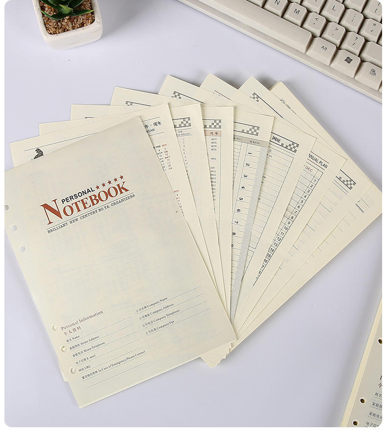 Carnet de notes personnalisé A5 A6, Page intérieure, recharge 6 anneaux, reliure spirale, Inserts intérieurs, planificateur à feuilles mobiles, journal intime, papiers de remplissage intérieurs
