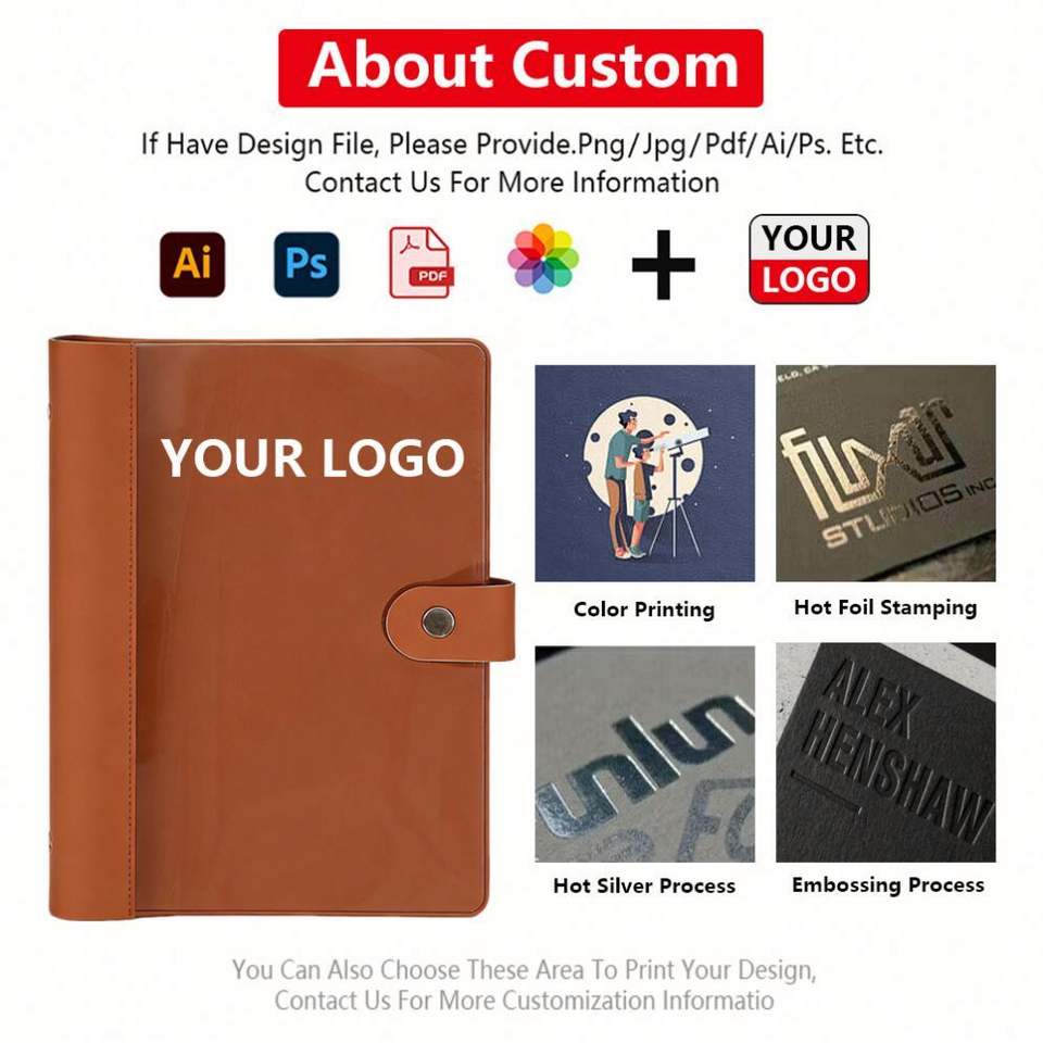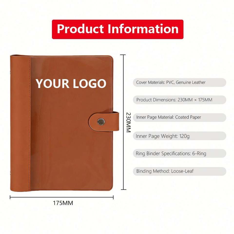 Carnet de notes/agenda A5 personnalisé en cuir PU souple avec anneaux, pour étudiants, idéal pour l'école, le bureau ou comme cadeau