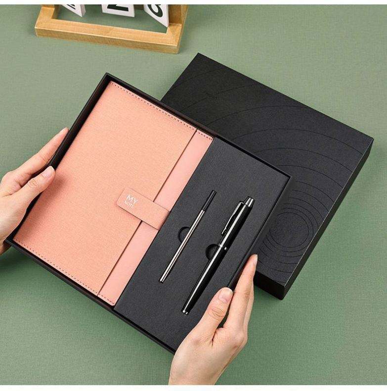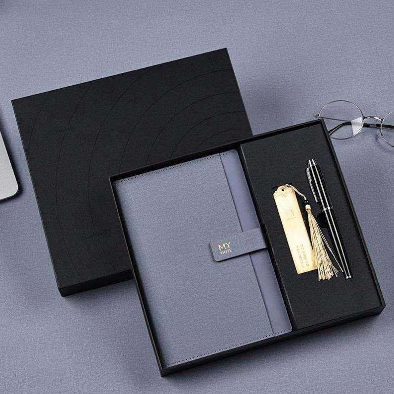 Carnet de notes de luxe en cuir PU A5 personnalisé pour salon professionnel, coffret cadeau exquis pour Noël