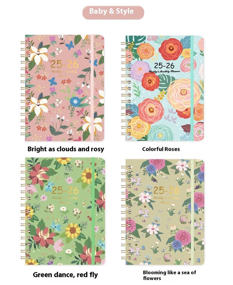 Carnet de notes à plan hebdomadaire A5 personnalisé avec sangle et bobine Cross-Border 2025 Schedule Paper Cover New Customizable Notebook