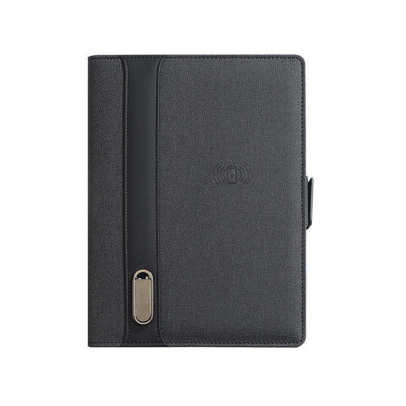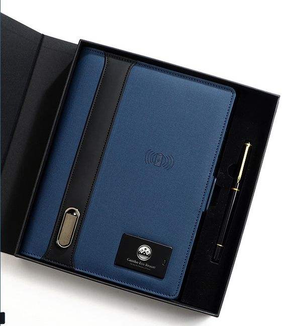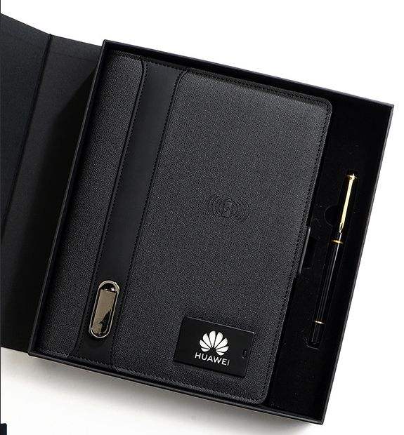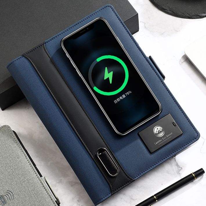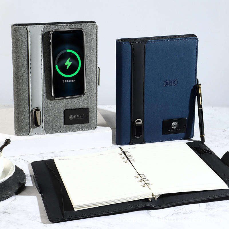 Carnet organisateur/agenda A5 personnalisé avec recharge sans fil, impression sérigraphiée, coffret cadeau d'affaires, couverture rigide en cuir, feuilles mobiles