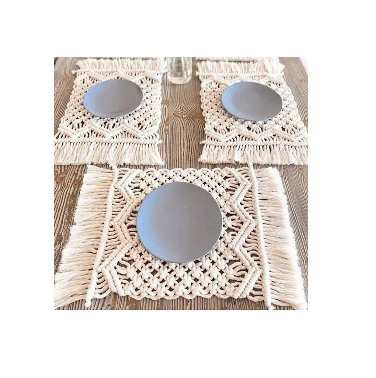 Accessoire personnalisé napperon de broderie artisanale tapis de plaque d'isolation en dentelle de style européen tapis de table de dessous de verre en macramé anti-brûlure