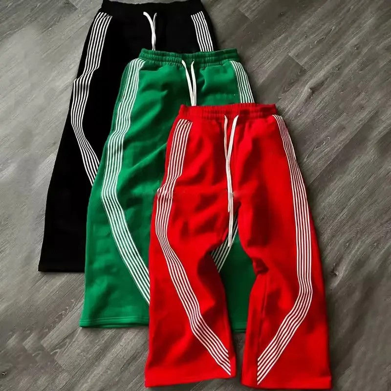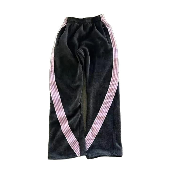 Joggers en toile délavée personnalisés, coupe droite, légers, taille haute élastique, style streetwear, sportswear décontracté, avec bandes latérales