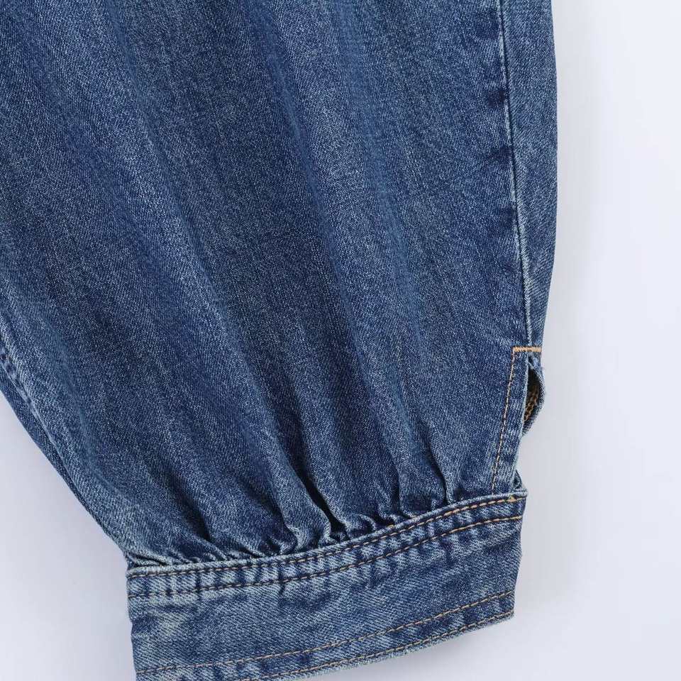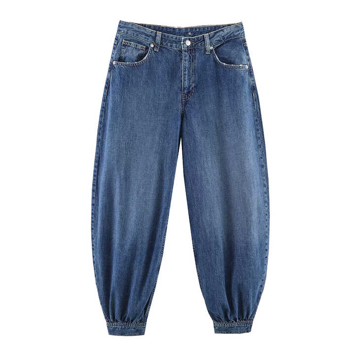 Jean Ballon Taille Mi-Haute en Denim Personnalisé avec Logo, Nouvelle Tendance, Couleur Unie Rétro, Décontracté pour Femme
