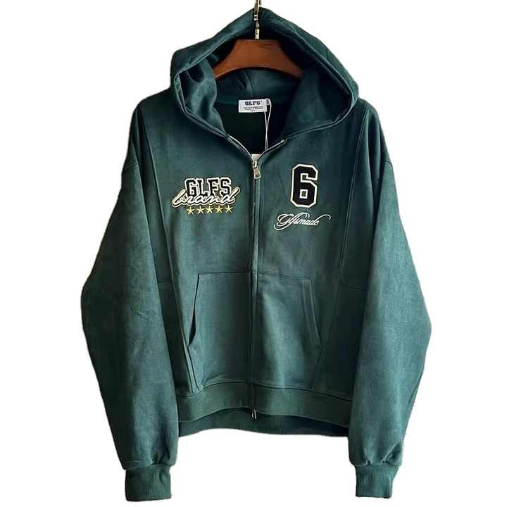 Sweat à capuche brodé avec patch et fermeture à glissière surdimensionné pour unisexe, style Boxy, 2025