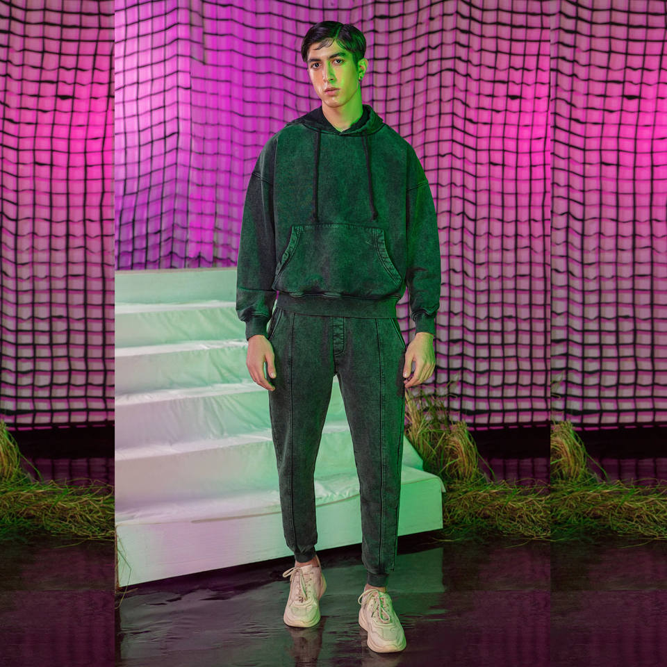 Jogging évasé personnalisé délavé à l'acide ensemble de sweat à capuche coton polaire maigre soleil délavé survêtement imprimé en détresse survêtements pour l'hiver