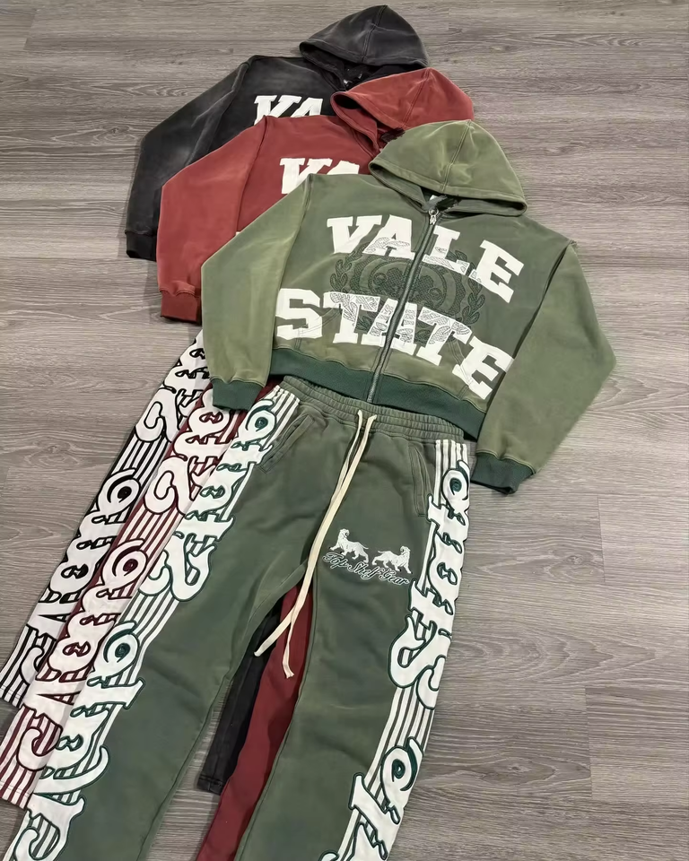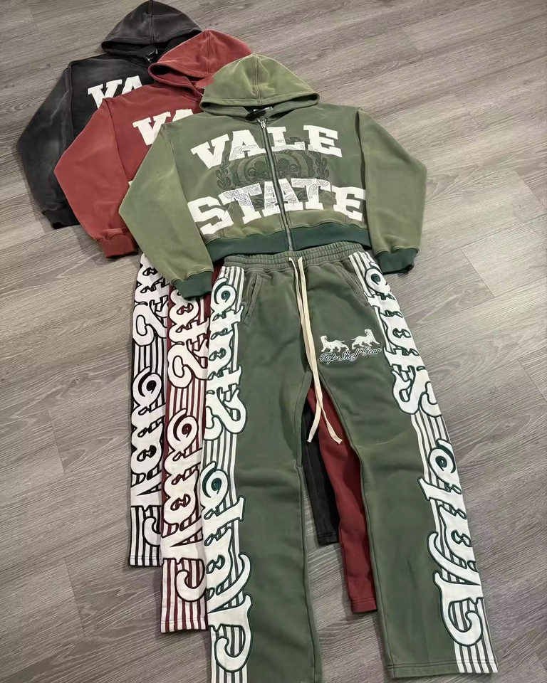 Pantalon évasé délavé à l'acide personnalisé 500 GSM Joggers à jambe droite Faux vieux sweat à capuche costume pour hommes pour la saison d'automne