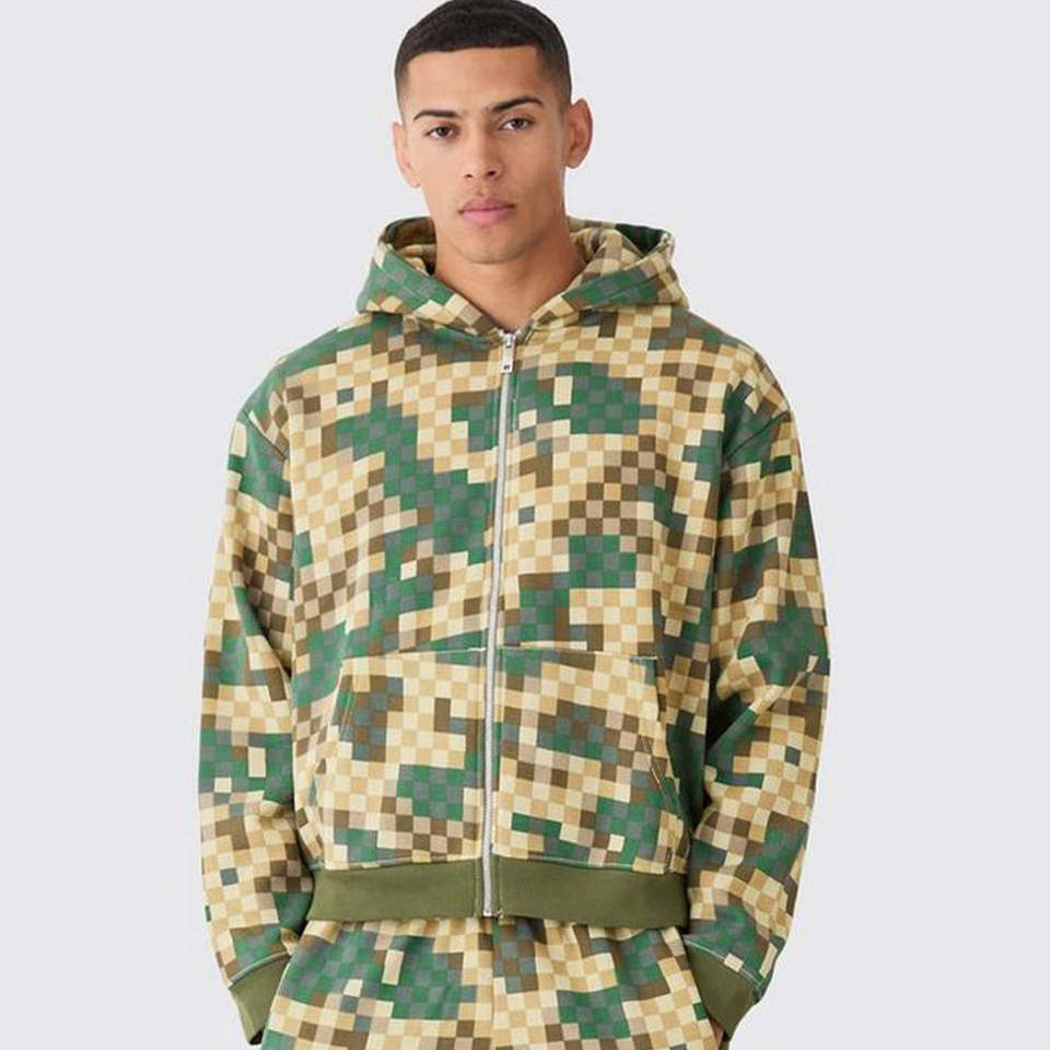 Survêtements évasés personnalisés avec fermeture éclair 500 GSM combinaison de jogging à jambe droite survêtement en détresse ensembles de sweats à capuche et de pantalons de survêtement pour hommes
