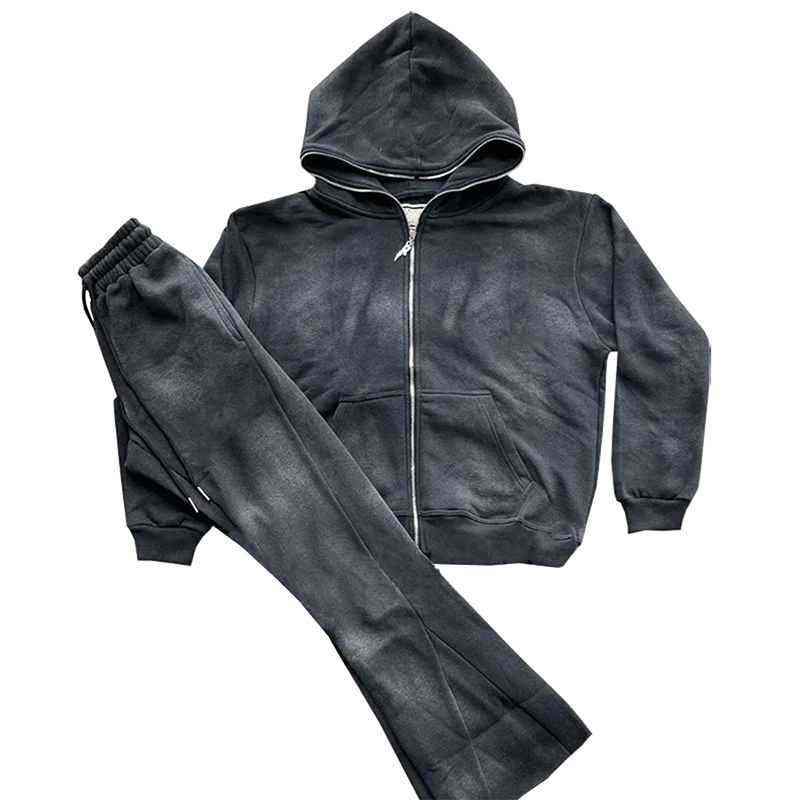 Survêtement à capuche délavé personnalisé avec coupe régulière, style décontracté, 100% coton pour une performance quotidienne