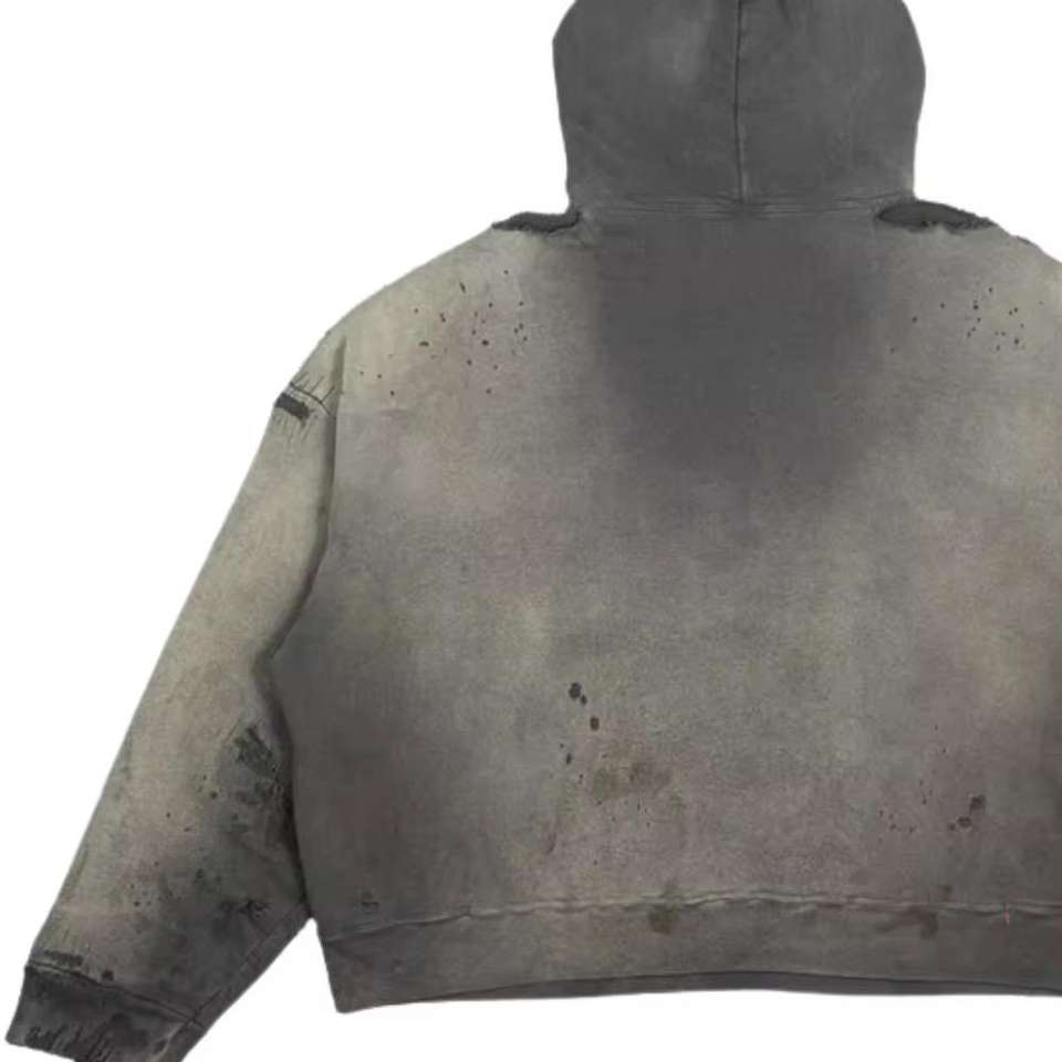Sweat à capuche personnalisé délavé à l'acide, coton vieilli, surdimensionné, streetwear, fermeture éclair, unisexe, broderie 3D pour l'hiver